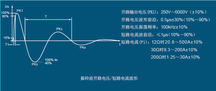 開路電壓波形前沿(T1)(10%~90%) | PK1處0.5μs±30% | ||