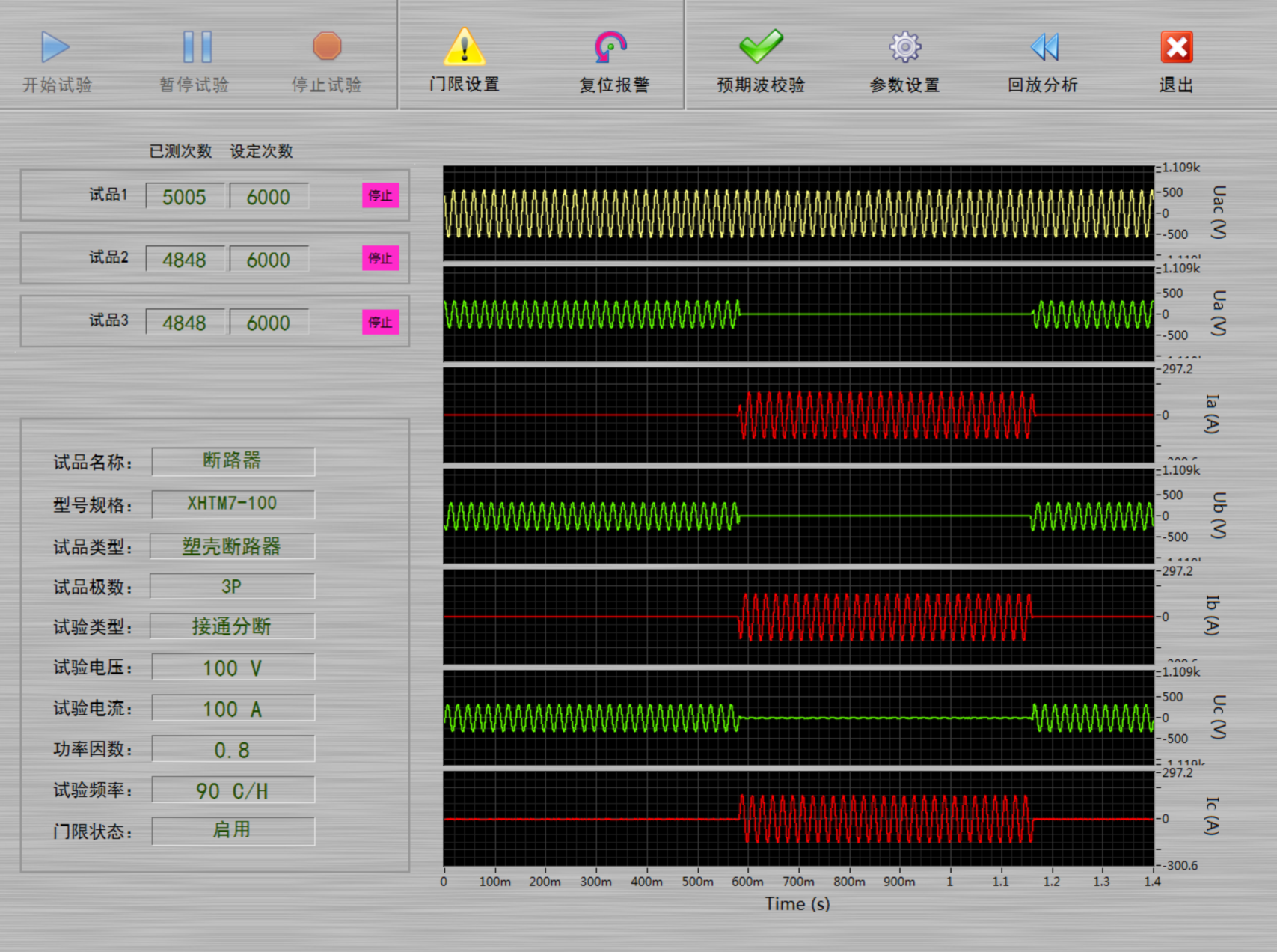 本系統(tǒng)滿足斷路器、接觸器、繼電器、車載高壓繼電器、隔離開關(guān)、雙電源開關(guān)、面板開關(guān)、插頭插座、充電樁、浪涌保護(hù)器等產(chǎn)品進(jìn)行電氣壽命、接通、分?jǐn)嗟仍囼?yàn)。